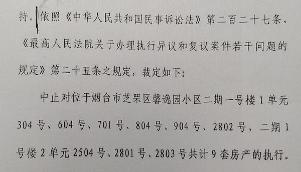 2023年6月8日,馨逸园公司向法院递交解封申请,法官仅仅通过调查笔录告知不予解封,却拒绝出具任何具有法律效力的司法文书。更令人瞠目结舌的是,2023年8月7日,莱山区法院就同一执行案件,再次裁定查封馨逸园公司名下另外16套房产。面对馨逸园公司提出的书面异议,法院至今未给予任何回应,导致25套房产长期处于非法查封状态。