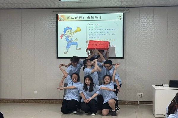 通过老师对于“党铸军魂”的具体讲解,在老师的带领下实景模拟了“三湾改编”的情节,将支部建立在培训班上,选举班长、宣传员、卫生员与“士兵委员会”委员等团队角色,设计了班级名称,口号,制作班旗,进行团队风采展示,最让我印象深刻的是,在时间紧任务重的情况下,我们班分工明确,使得在规定的时间内确定了各项任务的分工并圆满完成,而“人民星火班”的班名,也镌刻着我们班对青年所肩负的任务和使命的深刻理解。