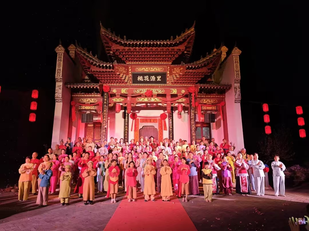 19点48分,随着一阵绚丽多彩的灯光秀划破夜空,整个沼山古村桃乡景区瞬间被点亮。五彩斑斓的光线在夜空中交织、舞动,如同一场视觉魔法,将现场气氛推向了高潮。观众纷纷抬头仰望,脸上洋溢着惊叹与期待的笑容。