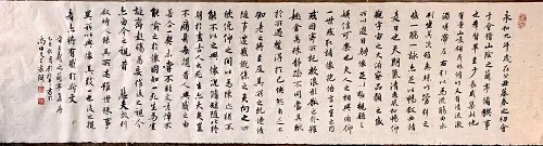 在书法研习之路上,顾龙平始终秉持“师法乎上”的理念,临池不辍、废寝忘食。他潜心体悟“永字八法”的精妙,力求笔法规整、功力扎实;又不拘泥于技法,以开阔思路探索书法的意与神,追求“行意烁古通今”的境界。楷书创作上,他曾工笔书写《史记》《坛经》《佛遗教经》《心经》《道德经》等经典典籍,一笔一划间尽显严谨与虔诚;行书领域,他对王羲之《兰亭序》情有独钟,临摹次数直下千遍,将“天下第一行书”的灵动、飘逸与雅致融入自己的笔墨血脉,这份超乎常人的定力,也让他的书法逐渐形成了兼具传统韵味与个人风格的艺术面貌。
