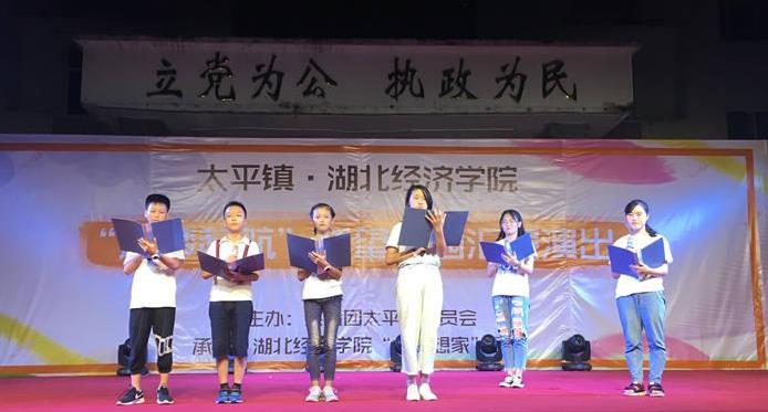 “大梦想家”团队队长赵巧灵介绍,本次汇报演出坚持社会主义核心价值观的引领作用,突出大学生志愿者与留守儿童的互动,通过群众文化节这个平台向社会传递正能量,引导社会积极关注留守儿童的健康成长,是太平镇巩固脱贫攻坚成果,推进乡村文化振兴的一项重要内容。据悉,湖北经济学院“大梦想家”团队七月中旬来到太平镇,在贺龙希望小学开展为期两周的“希望家园”公益支教活动,用爱和行动关爱大山留守儿童,获得广泛好评。