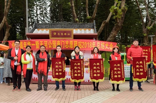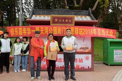 (紫荆新闻网 记者刘小浩 广州报道)2019年1月6日,以“我自愿 我快乐”为主题,由天河公园南门志愿驿站举办的“情牵南门爱三载,携手驿站心相印”,2018年度总结表彰大会,在广州市天河公园南门隆重举行。