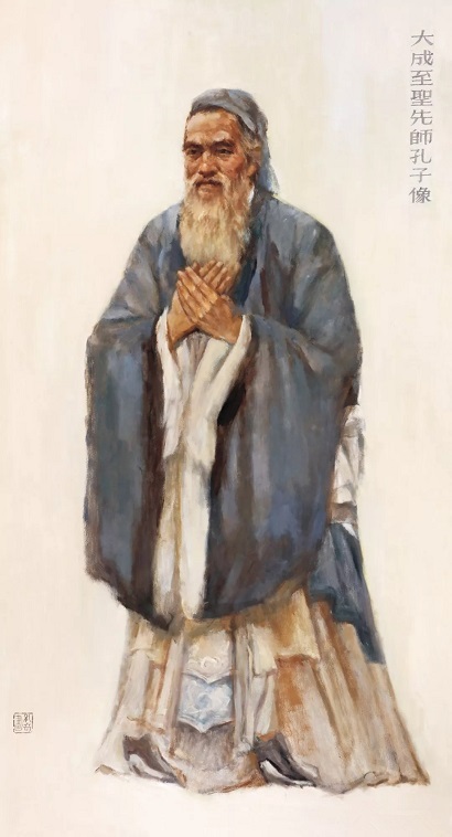 孔奇是一位有历史担当的艺术家,无论是意象选择还是内质上,都表明了这一点。因为画家笔下的写实并不只是经验和真实的再现,这是艺术的自觉和自然的必然。以“诗礼传家”油画作品展为例,画家以孔子生平事迹与精神思想为依据进行了创作,即《孔子像》《孔子行教图》《四圣七十二贤》,以及三孔的孔庙、孔府、孔林的写生等,在规模宏大的73幅89件作品中,均以写实的手法给与表现,在雅俗共赏之中,让人领悟孔子作为民族文化开拓者的风范。