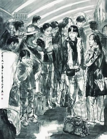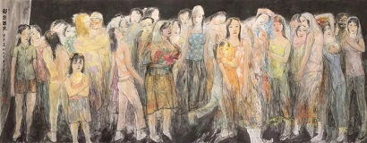 孔奇的创作很好地体现了艺术为人民服务,艺术为时代代言的宗旨。你可以看到他到建筑工地写生,以他丰富的生活阅历,关注农民工的生存状态,以艺术的手法反映艺术家对生活的认知。尤其在“自然•空间”系列作品中凝聚了民族与西方,融合了浪漫和现实,生命与自然得到了完美的交融,色彩优雅,夸张变形合理,线条的运用有韵律感、节奏感,飘逸又潇洒,画面的把握、布局、构思都有个人鲜明的特色,释放出一种精神空间的广度和深度。孔奇的创作手法有独到之处,如《一年又一年》《都市阳光》《自然之歌》等大幅创作中,把那么多人组合在一起很不容易,充分体现了他的绘画才能和艺术天赋。