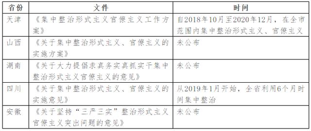 去年10月,天津便开启了集中整治形式主义、官僚主义,集中整治的时间截至2020年12月,去年11月,山西《关于集中整治形式主义、官僚主义的实施方案》印发,今年1月,四川开始整治,时间不同于天津,是用6个月的时间集中整治。