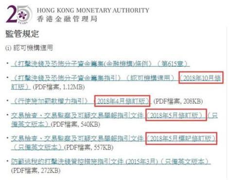 2018年3月起,香港金管局连续修订和发布了,多份关于反恐、反洗钱的官方行动文件,任何涉嫌的香港银行等金融机构的相关处罚、银行交易检查和监察、可疑交易举报等等方面,可见,2018年,香港政府对于本地金融机构的监管和监察力度前所未有的强势。