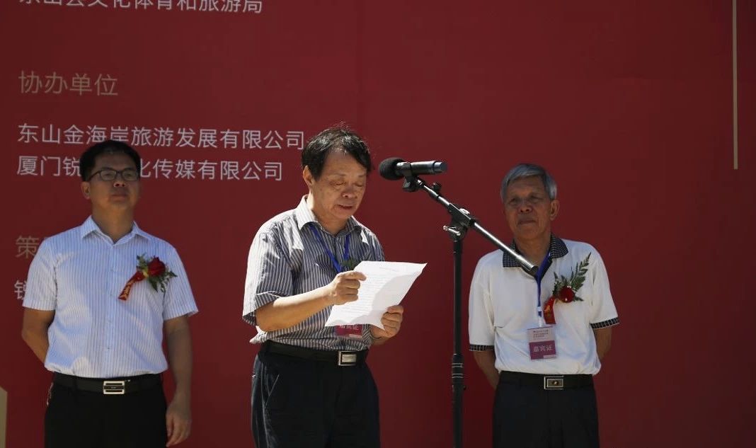 开幕式由东山县委常委、宣传部长李斌主持。东山县委副书记洪维椿、福建省美协名誉主席翁振新、中国画学会常务副会长、著名美术评论家孙克先后致辞,漳州市委常委、宣传部长刘伟泽宣布画展开幕。