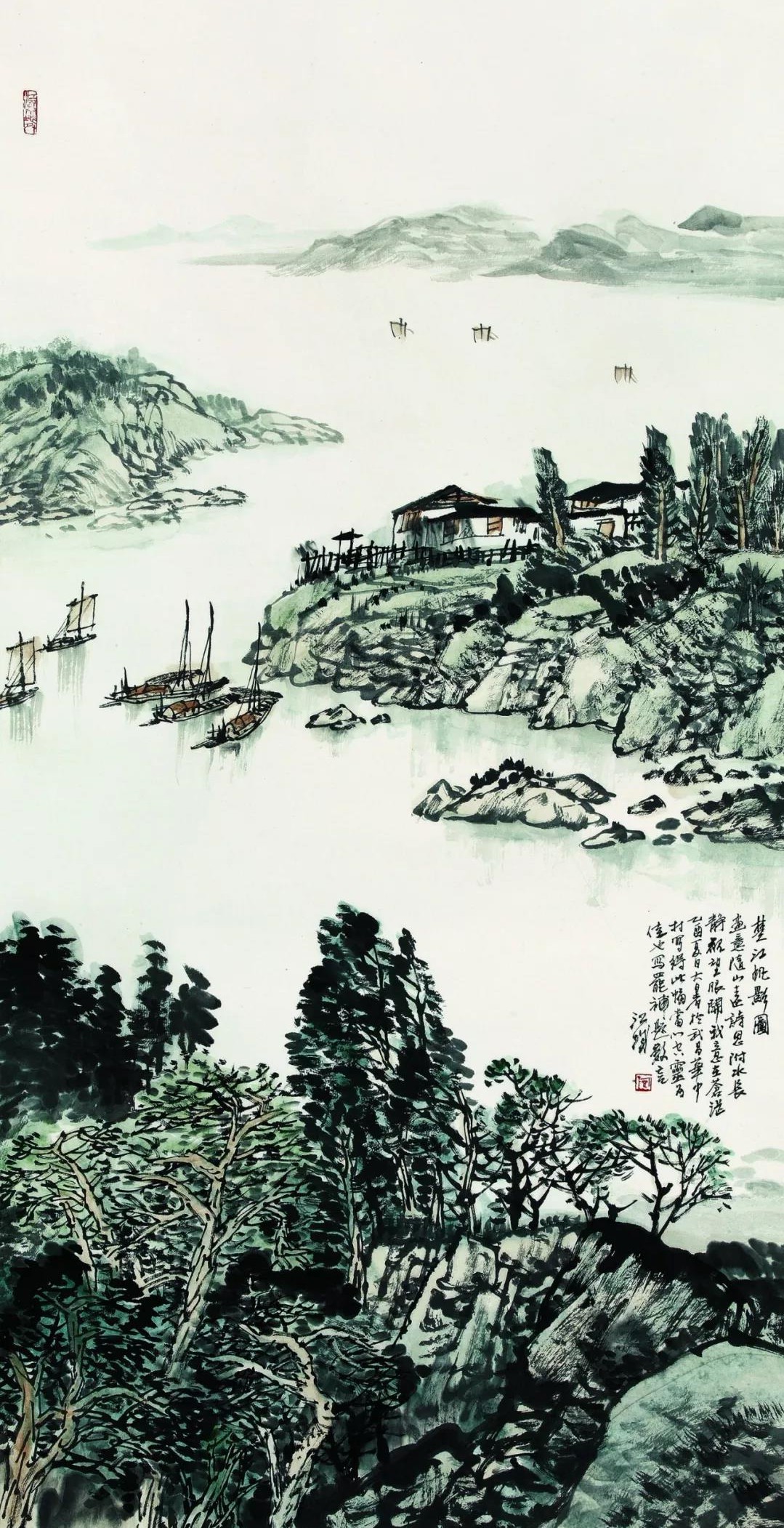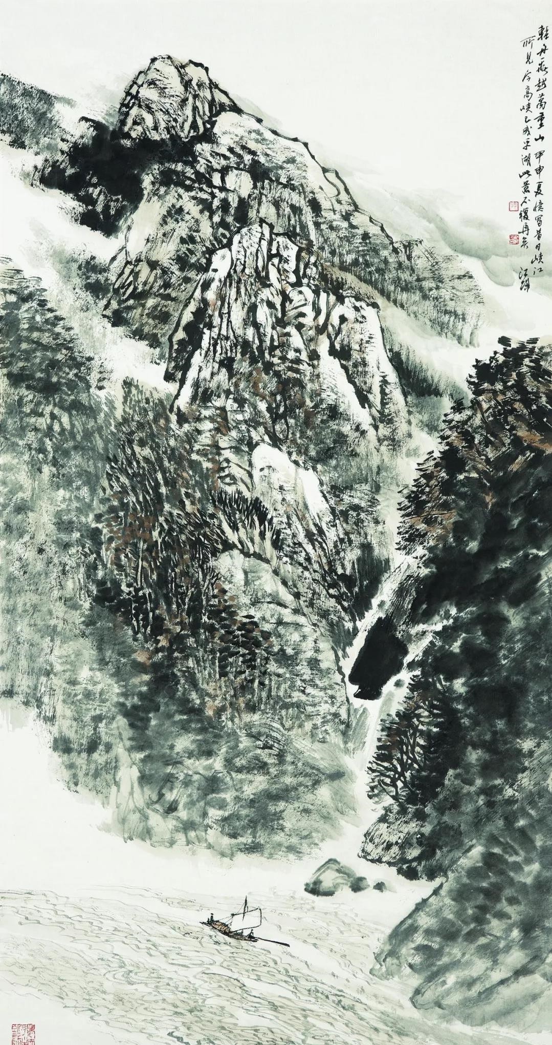 这个阶段的施江城,生活与艺术创作的成熟增强了他的文化内涵,他秉持着中华民族的文化智慧,努力把长江文化精神的力量放在作品中,令他继续向高峰奔跑。因为长江之缘,他有幸广交前辈大家,特别是与画长江三峡为著的陆俨少、何海霞、亚明、钱松岩、宋文治等中国画坛一代大家,得到老一辈艺术名宿的殷切关怀和砥砺切磋。在80年代初宋文治先生引荐他结识了以画长江三峡蜚声画坛的陆俨少先生。