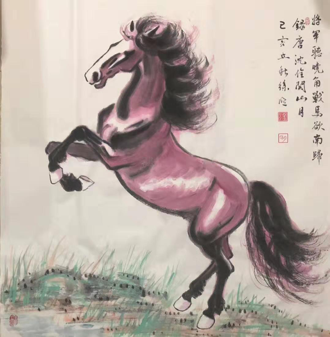 徐明,擅长画马、工笔人物,尤善以画示禅,有小(悲鸿)之美誉,曾多次参加国内外书画名家美术作品交流展。在艺术不断的探索与追求中,他的作品笔势遒劲內敛,结体隽秀飘逸,布篇行云流水。
