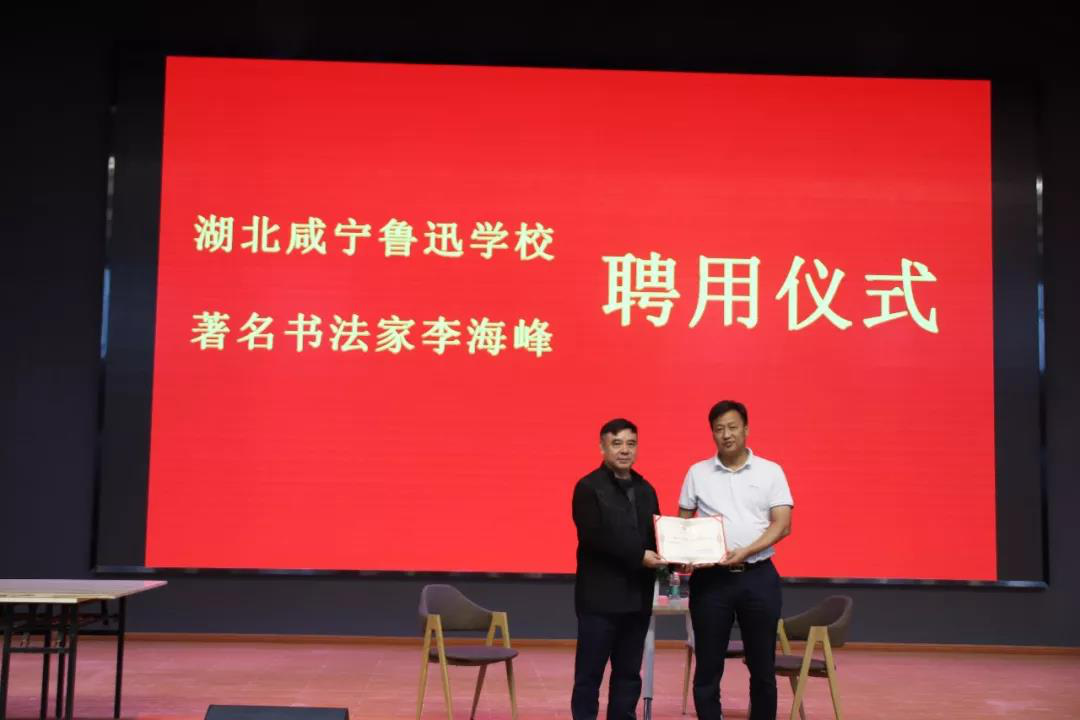 此次交流书法知识,李海峰大师和龚科校长达成共识,为弘扬传承书法艺术,让艺术之花在湖北咸宁鲁迅学校扎根绽放,龚科校长代表学校聘请李海峰书法家为学校特聘专家。