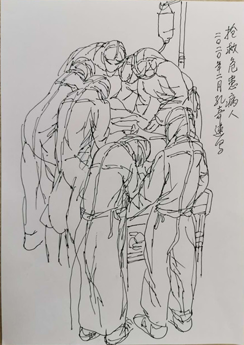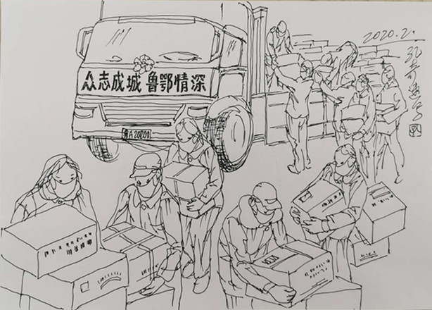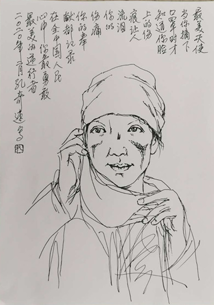 孔奇先生,现已70高龄在家已隔离50多天,在天灾面前他无所畏惧,仍然拿起笔记录那些“抗疫”一线可歌可泣的英雄形象,以一幅幅画面展现“抗疫”人民战争的全景画卷,展现中国人民团结一心,同舟共济的精神风貌。