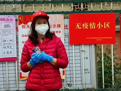 武汉市龟山风景区管理处下沉社区党员胡芳,从2月15日下沉到世纪彩城小区,每天坚持全天候值守小区卡口,做好居民防控宣传工作,耐心解释新冠肺炎的严重性,劝导居民不外出,不聚集,登记出入证,给小区居民买菜送药都认真负责带头干,发挥了党员模范先锋作用,以实际行动践行着一名普通党员的初心和使命。