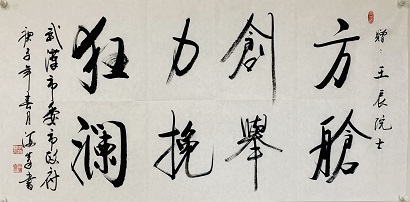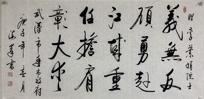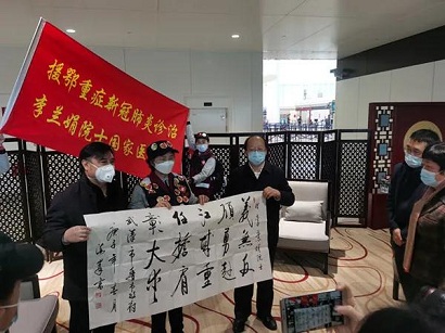 3月31日上午,中华文化促进会湖北省社会艺术水平考级中心主任、湖北省书画家联谊会主席李海峰受武汉市委、市政府邀请,为国家医疗队李兰娟院士及部分援鄂医疗队送行,并亲自题写:“义无反顾勇赴江城重任担肩彰大爱”,以表达对抗“疫”英雄的崇敬之情!