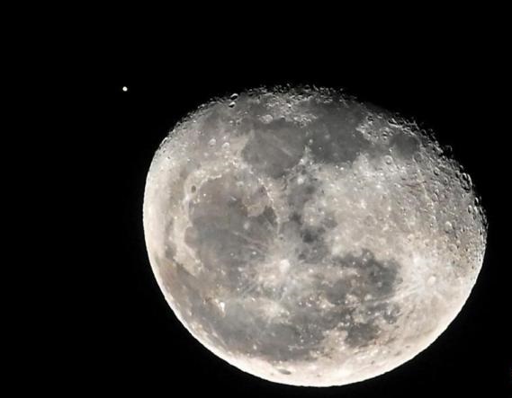当地时间9月5日,哥伦比亚卡利市,月球和火星同框。