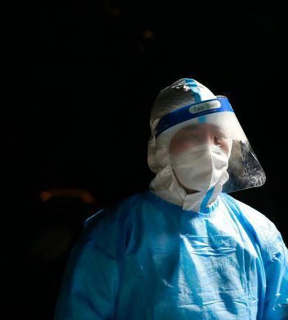 图为卯相社区核酸检测点身着防护服的医护人员。