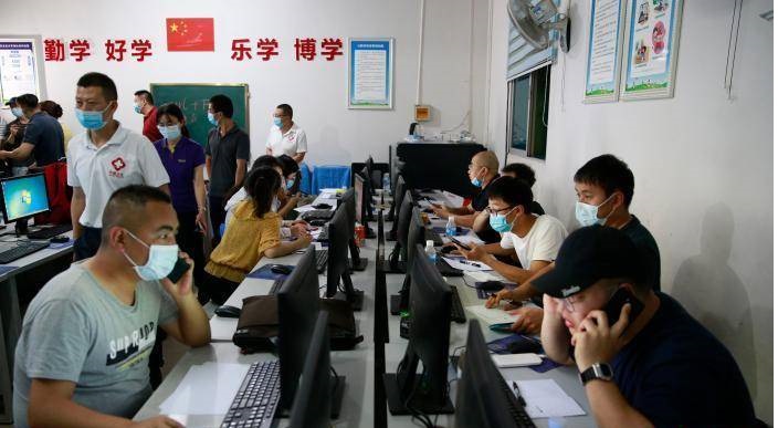 图为临时核酸检测数据中心的工作人员在对信息进行处理。