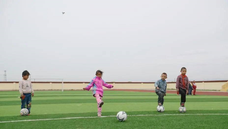 资料图:呼和浩特市太平庄村的太平庄小学学生在操场踢球。