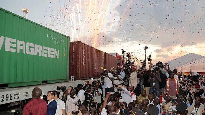 资料图:2017年5月30日,蒙内铁路移交仪式在肯尼亚港口城市蒙巴萨举行。
