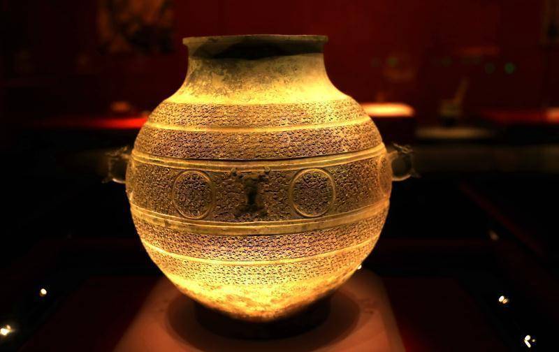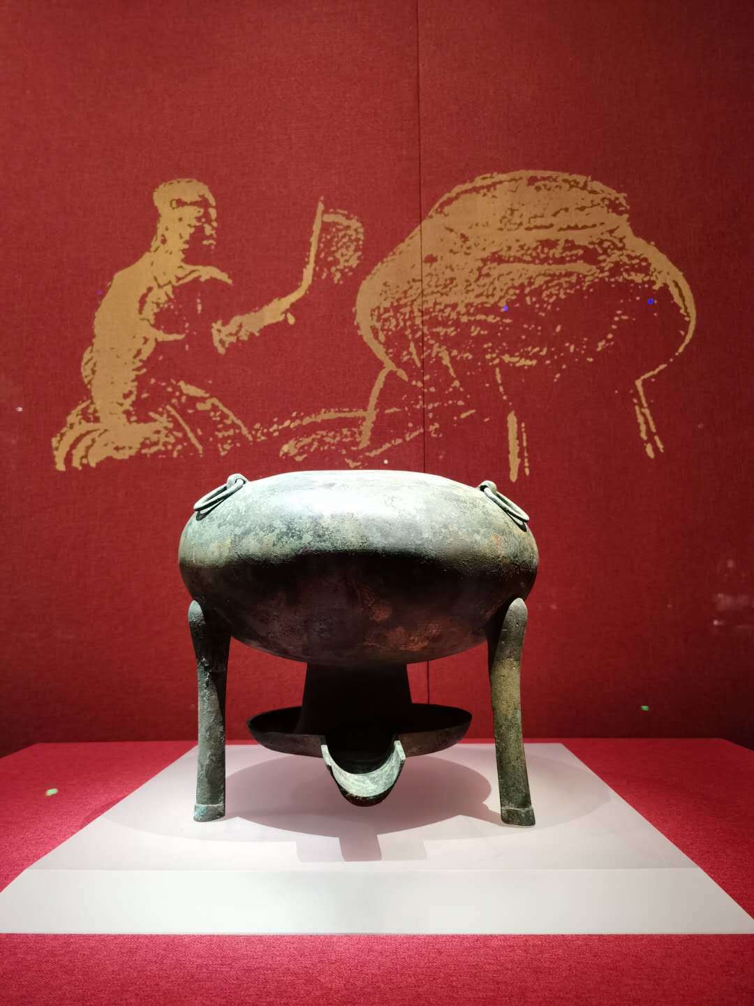 青铜温鼎,其实就是火锅,发掘时这里面还有板栗