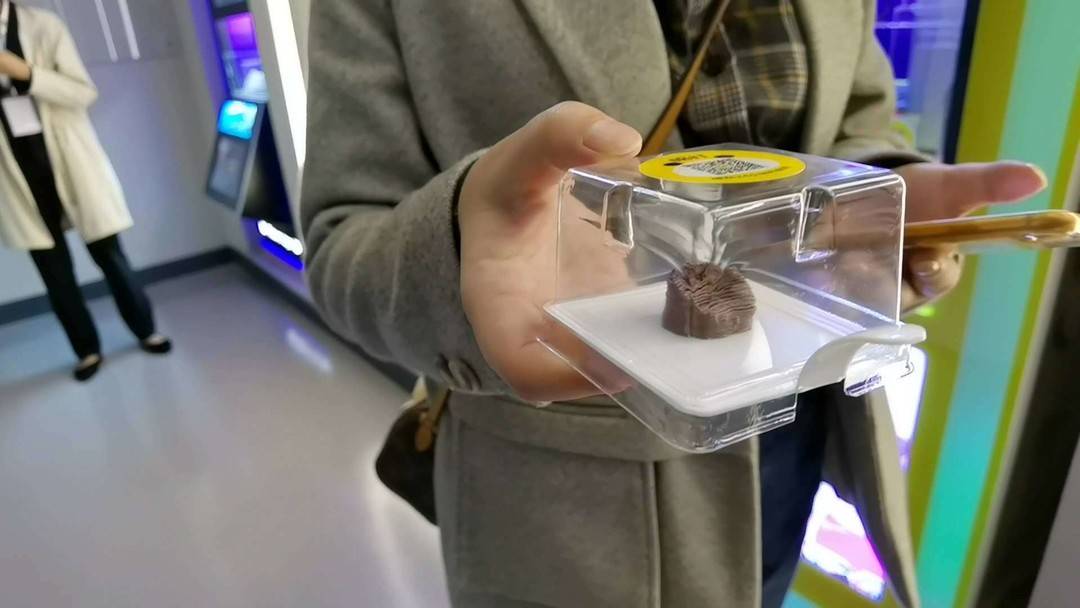 游客赵女士双手捧着3D打印成的“褭蹏金”巧克力左看右看,“蛮好玩的,舍不得吃掉!”