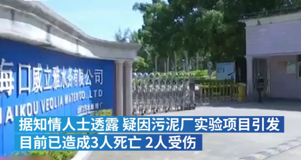 9月24日,海南海口。海口市一污水处理厂发生爆炸。知情人士透露,疑因污泥厂实验项目导致,事故致3死2伤。海口市应急管理局称,3人确认死亡,具体情况正调查。