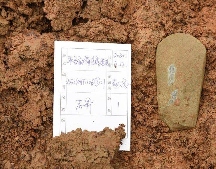 这是出土的石斧(资料照片)。图片来源:新华网 云南省文物考古研究所供图