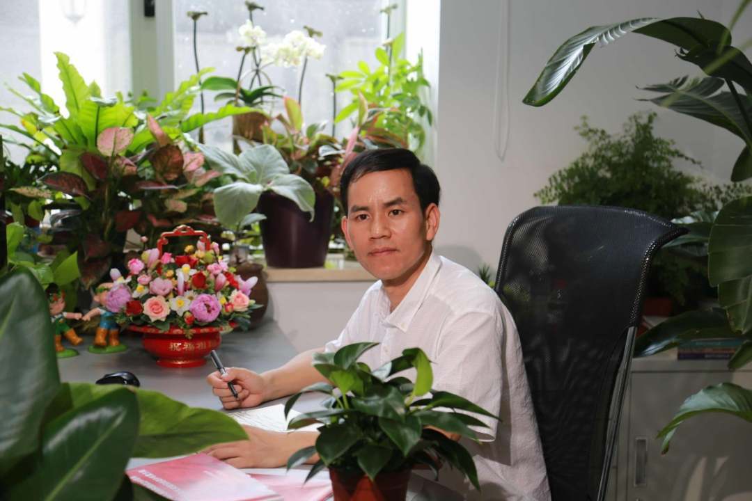 今年46岁的蓝海浪是广西人,从小对花草树木有着独特的情感。走进他的办公室,不足10平方米的空间,却摆放着超过20种植物盆栽,连办公桌都被绿植包围,满眼郁郁葱葱,四季花开不断。