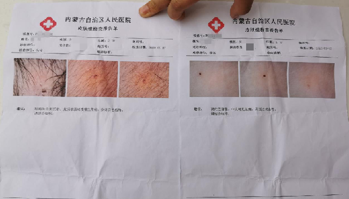 一名身上有不明针眼的孩子的检查报告单上,可清晰看到针眼。