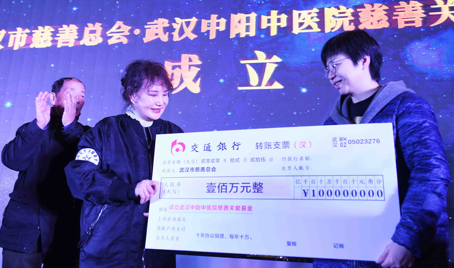 武汉市慈善总会接受100万元捐赠支票