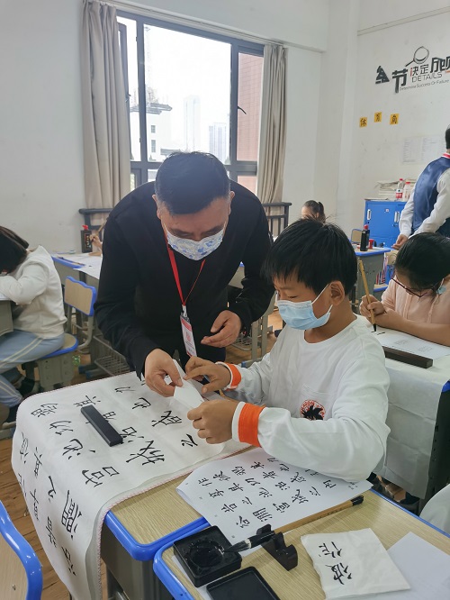 授牌仪式后,2021年秋季书画及朗诵等级考试在武汉市情智学校进行。考生们经过长时间的书法练习,在考场上镇定自如,行云流水,落笔如有神。字形正倚交错,大大小小,开开合合,线条粗细变化明显,跌宕有致。一笔一划无不透露出对书法的无限专注与热爱!