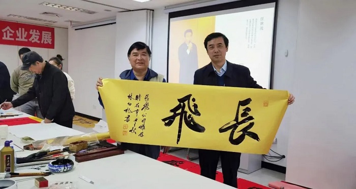 12月9日,湖北省原副省长、湖北省延安精神研究会会长任世茂;湖北电信原副总经理、国家一级美术师林幼槐;湖北省书画家协会会员袁太平、画家安忠;书法家陈艾等走进长飞光纤光缆股份有限公司,现场挥毫泼墨,为长飞公司送上了一份最具文化特色的艺术大餐。