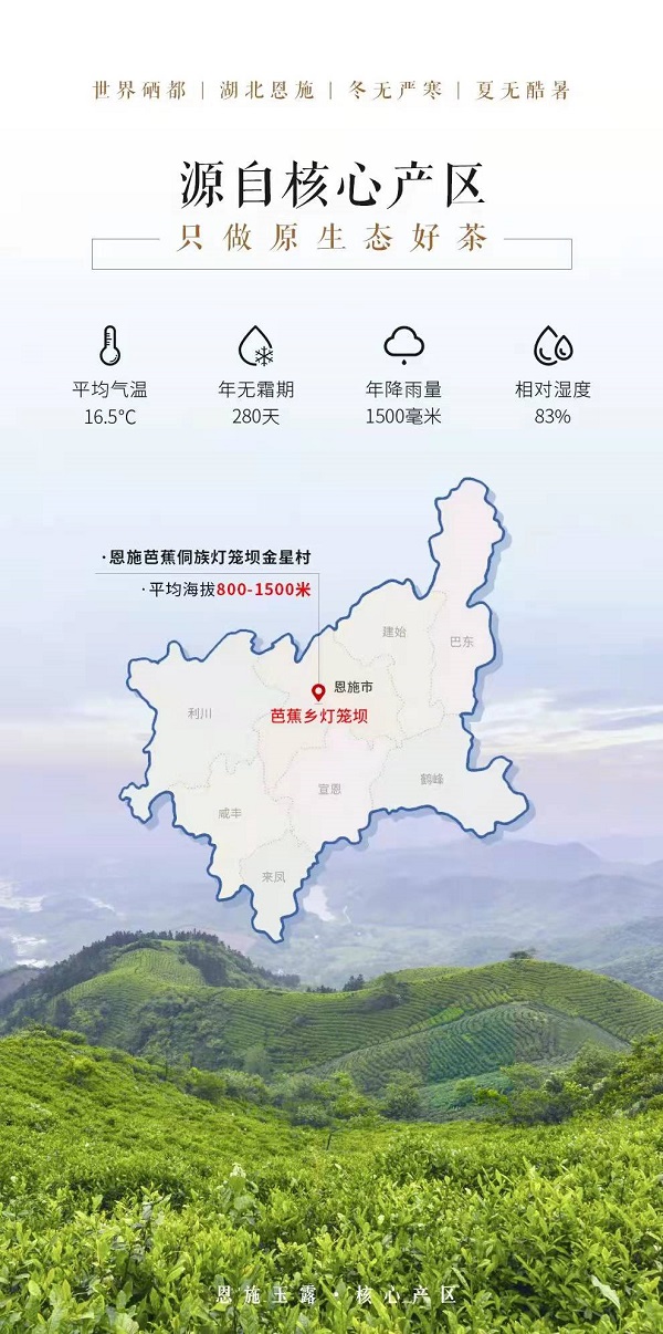 据湖北御鲜景农业科技有限公司总经理潘斯军介绍:御景恩施玉露茶,产自素有“恩施玉露生态走廊” 之称的生态茶叶领地恩施市芭蕉侗族乡灯笼坝村,又被誉为“富硒之都”, 是恩施玉露茶发源地。御景茶业拥有生态茶园5000亩,地处平均海拔1200米的绵延大山之中,常年云雾缭绕,气候温和,土壤肥沃,独特的生态环境,孕育出高品质的御景茶系列:恩施玉露、恩施硒茶、恩施红茶、白茶、富硒贡芽、高山野生红茶等。湖北御鲜景农业科技有限公司拥有世界一流先进的蒸汽杀青自动化生产线,同时致力于传承古法制茶、科研创新、品牌合作。公司秉承“精益求精”的经营理念,以弘扬传统茶文化为己任,以“诚信经营”为根本,不断追求完美,坚持“只做原生态好茶”为宗旨!