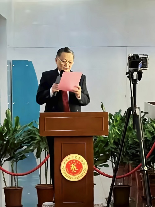 中国社会艺术协会主席邱新建发表热情洋溢的欢迎词。他说:为了推动“一带一路”的发展,中国中国社会艺术协会在国家典籍博物馆举办《一带一路 人文交流一一中西合璧古董艺术品回流瓷首展》,中国瓷器与西方艺术元素结合,给我们带来强烈的视觉冲击和心理震撼。当年,中国瓷器风靡欧洲,对西方生活方式产生了巨大影响。但真正的交流从来都是相互相承的。西洋人利用镶嵌工艺,结合人物、植物和动物的优美造型,将金银铜饰壁合在瓷器之上。让鎏金发光,展现华贵气象;令镀铜生色,映照艺术光芒。既增添独特的装饰性,又防止珍贵的瓷器受损。这些中西合璧回流瓷曾漂浮于海上丝绸之路,是丝路理念的结晶。我们请大家欣赏中西合璧回流瓷,目的在于促进中西文化交流与融合。出于疫情管控的需要,本次展览崇尚简约风格。随着疫情防控形势的好转,我们拟走向各地乃至于走向各国,进行中华5000年文化之交流,带动并促进“一带一路”的深入发展。