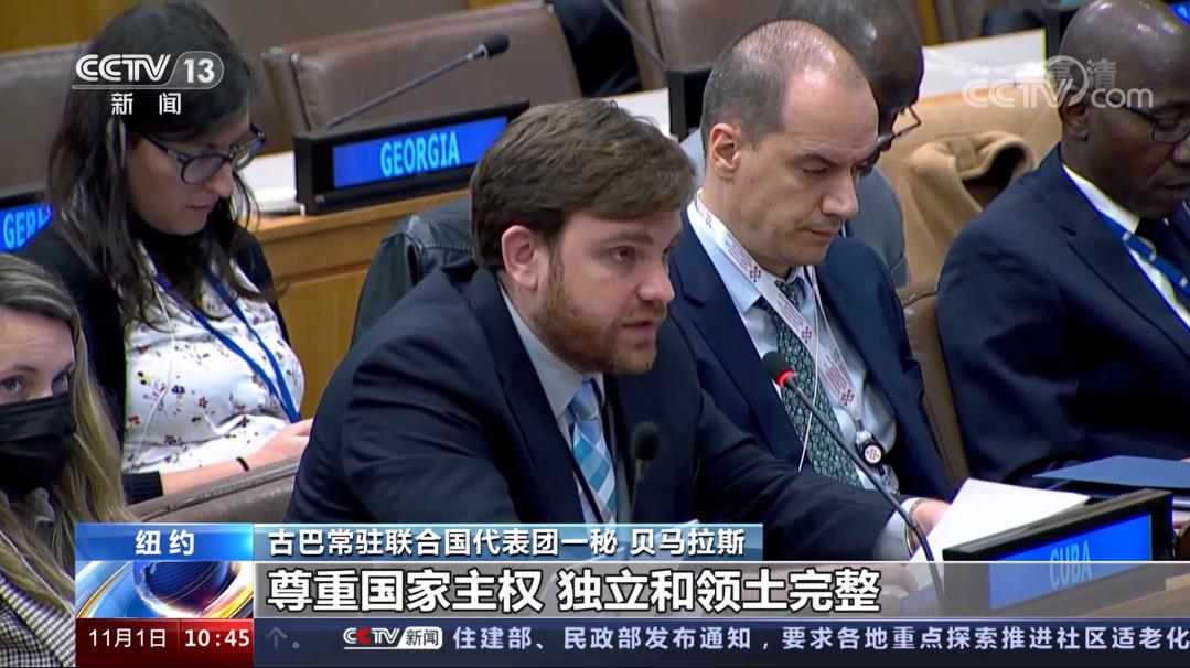 古巴常驻联合国代表团一秘 贝马拉斯 :尊重国家主权、独立和领土完整,不干涉主权国家内政是国际关系的基本准则。新疆、香港、西藏事务是中国内政,我们反对将人权问题政治化,反对双重标准,反对以人权为借口干涉中国内政。