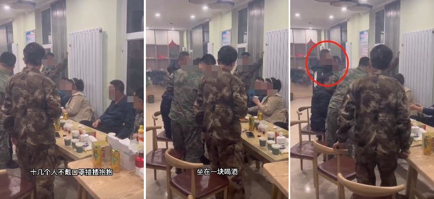 如果是在工作期间,相信绝不容许饮酒。如果是在休息期间,那么应该要么在家中,要么在外面的宿舍点。从图中可以看到相互嬉笑言欢,已经有了醉态了。依靠这样的状态,能够将疫情控制住吗?