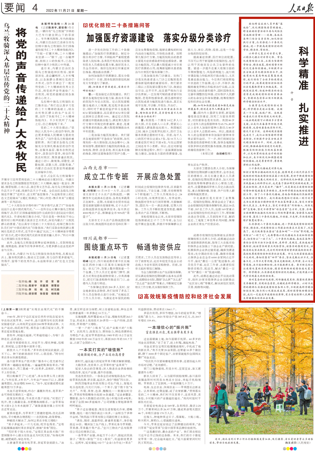 11月21日,人民日报在第4版发表仲音文章《科学精准 扎实推进》。这是仲音就疫情防控工作发表的第九篇文章。