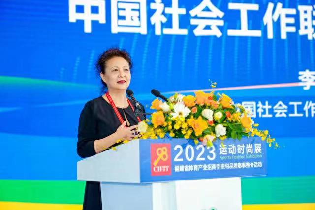 2023年9月9日下午,2023厦门国际时尚运动消费发展趋势论坛在厦门国际会展中心2023运动时尚展主舞台区如期举行。活动由厦门国贸猎迅会展有限公司和北京体银体育产业有限公司联合主办,中国社会工作联合会支持。中国社会工作联合会副会长李羚莅临会场并致辞,福建省人民政府参事徐平东、厦门市政协原副主席魏刚、厦门市体育局党组书记、局长阮敦梁、厦门市体育局党组成员、一级调研员张小博莅临会场见证大会举办和中国社会工作联合会文化和体育委员会(筹)发起的“冠军进社区”公益活动正式启动。