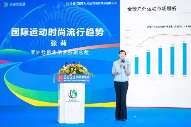 此届厦门国际时尚运动消费发展趋势论坛作为第二十三届投洽会的重要组成部分,紧扣投洽会“扩大双向投资 共促全球发展”永久主题和“开放·融合 引领高质量发展”年度主题,聚焦运动时尚产业发展,结合当下体育产业发展新形势与新趋势展开。在趋势解读主旨演讲环节,亚洲数据集团常务副总裁张莉结合详实大数据,对全球时尚运动消费趋势进行了主旨发言,她分享时尚运动项目的发展带动更多人对时尚运动的参与,时尚运动正在迎来全新机遇期,她同时指出数字化、社交属性、个性化消费需求以及可持续时尚、国潮发展是时尚运动发展新趋势。