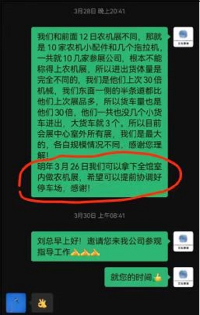 艾克思博公司在《情况反映》中这样写道:内蒙古国际会展中心 2009年建成至 2023年期间,我公司于每年3月26-28日在会展中心成功举办了 14届农机展,也是内蒙古国际会展中心每年唯一的国际性农机展。2022 年开始,改由会展中心刘先生负责后,公司在租用内蒙古国际会展中心展馆一事,出现一系列奇怪的现象。首先,会展中心抢在我司今年3月26-28日举办 14 届内蒙古农机展前两周,安排东某展览公司举办同样题材的农机展,帮助该公司“蹬热点”,半个月内在同一地点举办两个同题材专业展,类似情况在行业内属首例。其次,我公司早在今年3月28之前就向会展中心申报了 2024 年 3 月 26-28 日展馆档期,会展中心总经理刘先生以各种理由搪塞、拖延与我公司签订合同。直至9 月 8 日上午,我公司再次派人到会展中心与会展中心刘先生沟通,租用3 月 26-28日展馆档期,刘先生干脆扯下了“遮羞布”,很不耐烦的说:我就是要租给赵某文(东某展览公司负责人)办农机展又怎么样?你又能拿我怎么样?我现在就马上通知他来签合同,然后,当着艾克思博公司和会展中心工作人员的面打电话通知赵某文来签合同。还警告我们,要告我就去告,我刘某已经有六个官司在身,也不在乎多一个官司,我不怕!说完驱赶艾克思博工作人员离开他的办公室。