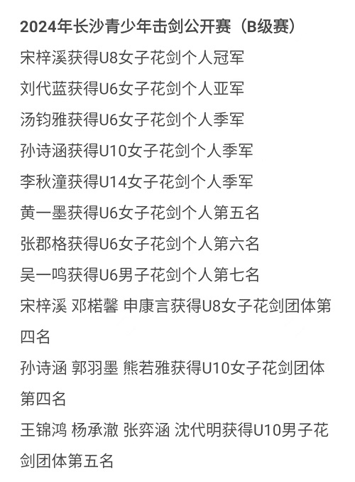 发布时间:2024-03-12 浏览: 次 作者:刘小浩 3月9日,一年一度的体育盛宴再次在长沙市国际会展中心拉开帷幕。2024年长沙市青少年击剑公开赛如约而至。这场中国击剑协会B级认证赛事吸引了全国各地4000余名青少年击剑选手参加,在为期两天的比赛时间里同台竞技,共同争夺荣耀与桂冠。 本次比赛分男、女组,设有花剑、重剑、佩剑三个单项,分个人赛和团体赛。为面向更广泛的参赛选手,参赛年龄设U6、U8、U10、U12、U14、U16、17+、公开组等多个组别。长沙市青少年击剑公开赛从2018年创赛,至今已成功举办五届,已成为中国大众击剑赛中南赛区中最具影响力、参与人数最多的年度击剑赛事。 2024年长沙青少年击剑公开赛,再次展示了武汉御剑击剑俱乐部的实力。来自该击剑俱乐部的队员们,在教练谢善钊的带领下,敢打敢拼,顽强奋战、力克群雄,取得了优异成绩,为俱乐部和个人争得荣誉! 据总教练邝先生介绍:武汉御剑击剑俱乐部是中国击剑协会专业组织团体会员,被授予为湖北省击剑运动青少年培训基地,武汉市青少年击剑培训基地,武汉市击剑运动后备人才培训基地。俱乐部学员在全国及各区域击剑比赛中成绩突出,多次获得全国击剑俱乐部联赛男子、女子花剑个人及团体冠军。湖北省第十六届运动会击剑比赛共获得5金5银1铜及多个前八名的佳绩。2023年11月,本俱乐部两名学员入选中国国家少年击剑队集训,并获得2024年世界少年击剑锦标赛及亚洲击剑锦标赛选拔赛资格。 通过本次比赛的举办,长沙市再次向世界展示了其作为体育强市的实力和魅力,期待未来更多类似的体育盛事在长沙举办,为市民带来欢乐和健康。 本次公开赛由中国击剑协会、湖南省体育局指导,长沙市体育局、湖南省击剑协会主办,湖南振翔文化体育活动有限公司承办。