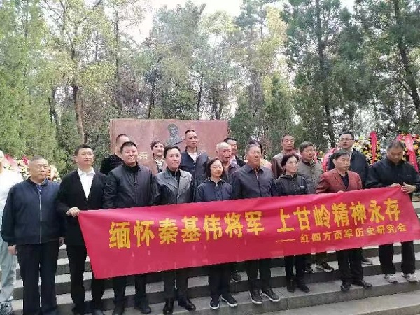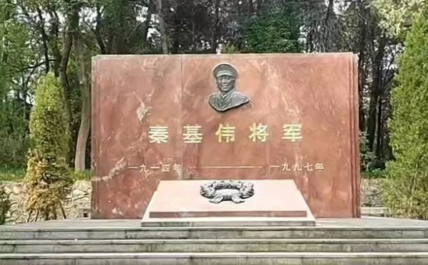 湖北省红安县有关领导、国科集团董事长余莉、秦基伟将军长子秦卫江、次子秦天以及社会各界人士,在秦基伟将军墓前敬献鲜花。
